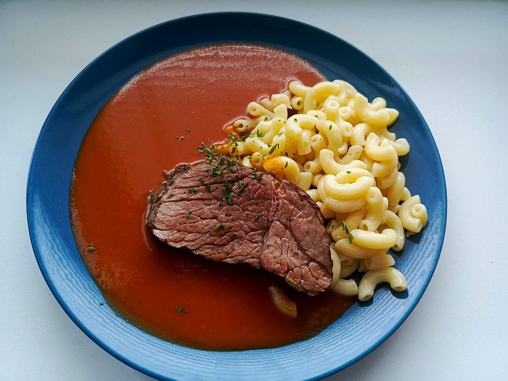 rajská omáčka s hovězím masem sous-vide a kolínky
